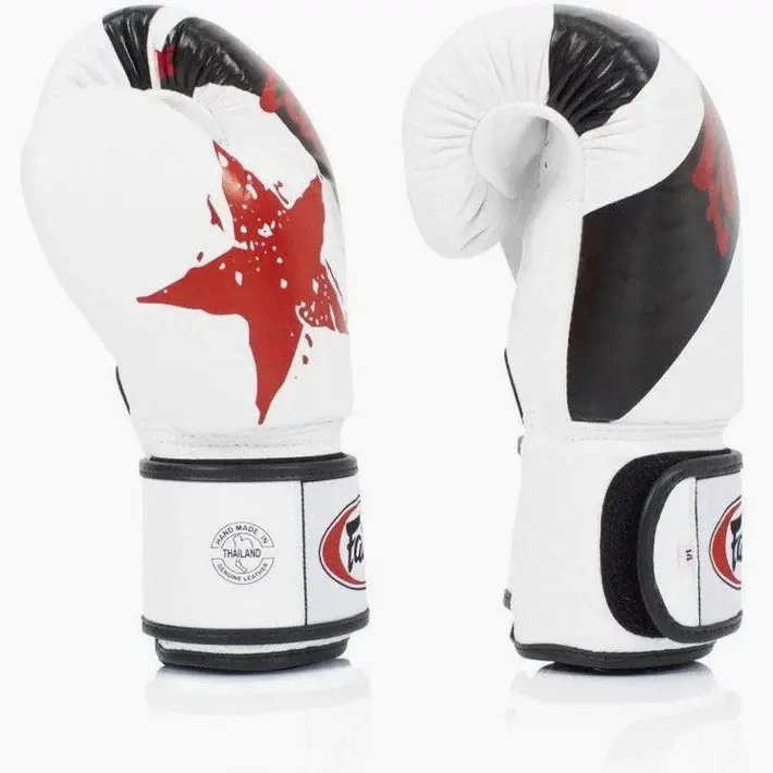 Boxerské rukavice Fairtex Nation Prints určite nezostanú nepovšimnuté ako pre ich technické vlastnosti, tak aj pre ich podmanivú grafiku. Vyrobené z materiálov najvyššej kvality, sú to 100% koža, synonymum odolnosti a trvanlivosti.