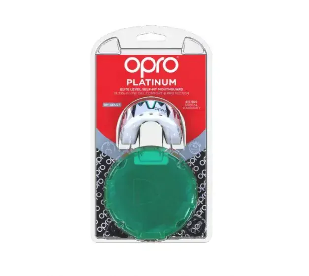 Chránič OPRO PLATINUM je vyrobený z dvoch vrstiev. Odolná vonkajšia vrstva slúži pre dokonalú ochranu pred nárazom a úderom. Flexibilná vnútorná vrstva pre vynikajúci komfort a pohodlie. Vzdušné kanáliky pre maximálne tlmenie a ochranu. Absorbčná vrstva na vnútornej čeľusti. Patentovaná rebrovaná technológia s dokonalým prispôsobením sa a ochranou pred úrazom tváre a vnútornej čeľuste. 13 anatomických rebier v špičkovom materiáli „hi-flow“ tvarovaným a rozmiestneným tak, aby presne zodpovedal morfológii zubov. Po vytvarovaní sa rozdelia a vyvoria užívateľovi vnútorný kanálik na mieru. Vnútorná absorbčná vrstva na ochranu zubov a mäkkého tkaniva. Strečové zóny dovolia vytvarovať OPRO chránič skoro pre všetky typy úst. Patentovaný vidlicový držiačik umožňuje ľahký a presný proces tvarovania, minimálnu garantovanú hrúbku zahryznutia povrchu a vytvorenie systému prevzdušnenia. Po odstránení držiaka sa vytvoria vzduchové vankúšiky s neuveriteľným komfortom a ochranou. Široká otvorená predná paleta pre ľahké dýchanie a rozprávanie. Vynikajúce vytvarovanie a udržanie. Od veku 7+. Vhodný pre všetky kontaktné športy. Nie je vhodný pre nositeľov fixného zubného strojčeka. Latex free – neobsahuje Latex. Biomasterná prísada ničí až 99,99 % škodlivých baktérií. Chránič po zakúpení nie je možne,z hygienickych dôvodov vymeniť alebo vrátiť.