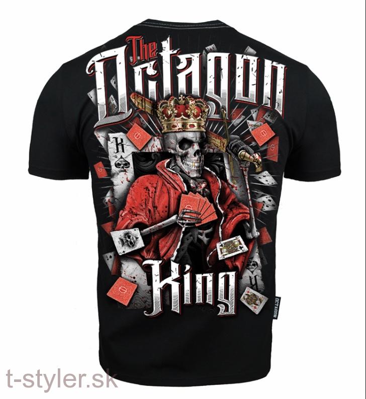Pánske tričko Octagon "King" v čiernom prevedení. Tričko s potlačou na prvý pohľad upúta svojím nápaditým dizajnom, ktorý sa nachádza na prednej aj zadnej strane. Obliecť si ho môžete na párty alebo do mesta. Toto tričko s krátkym rukávom vynikajúco vynikne v kombinácii s teplákmi, rifľami aj kraťasmi.