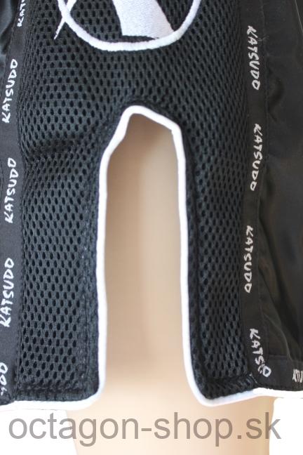 Pás je sedem krát prešívany, z vnutornej časti má šnúrku na stiahnutie. Po bokoch majú trenky našitú čiernu dierkovanú látku. Rázporky po bokoch (11 cm) umožňujú veľký rozsah pohybu.