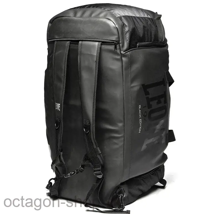 Batoh Leone Black Edition Backpack je ideálny do telocvične a ideálny pre tých, ktorí cvičia disciplíny, ktoré vyžadujú použitie príslušenstva (často veľmi objemného). So svojou kapacitou 70 litrov a mimoriadne všestranným dizajnom patrí tento produkt na vrchol zoznamu nevyhnutného príslušenstva pre bojovníka. Priestranný a veľmi pohodlný, môžete ho premeniť z batohu na tašku jednoduchým vytiahnutím rúčok so zipsom na spodnej strane. Okrem veľkého hlavného vrecka sú tu tri ďalšie vrecká, do ktorých môžete umiestniť aj mokré príslušenstvo: vďaka sieťovaným vložkám sa zabráni nepríjemným pachom.