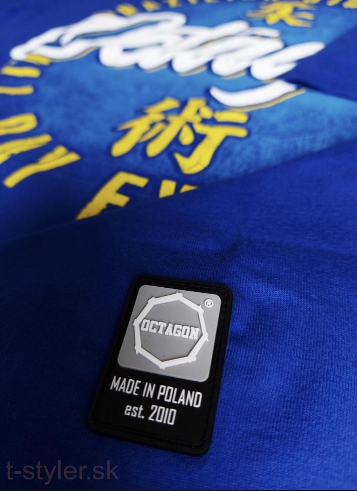 Pánske tričko s potlačou od značky Octagon. Octagon tričko Brazilian Jiu Jitsu modré je vyrobené z bavlneného materiálu, vďaka čomu je vzdušné a elastické. Jeho jednoduchý dizajn vynikne v spojení s teplákmi, kraťasmi alebo mikinou. Tričko s krátkym rukávom Octagon sa hodí na tréning alebo na každodenné nosenie.